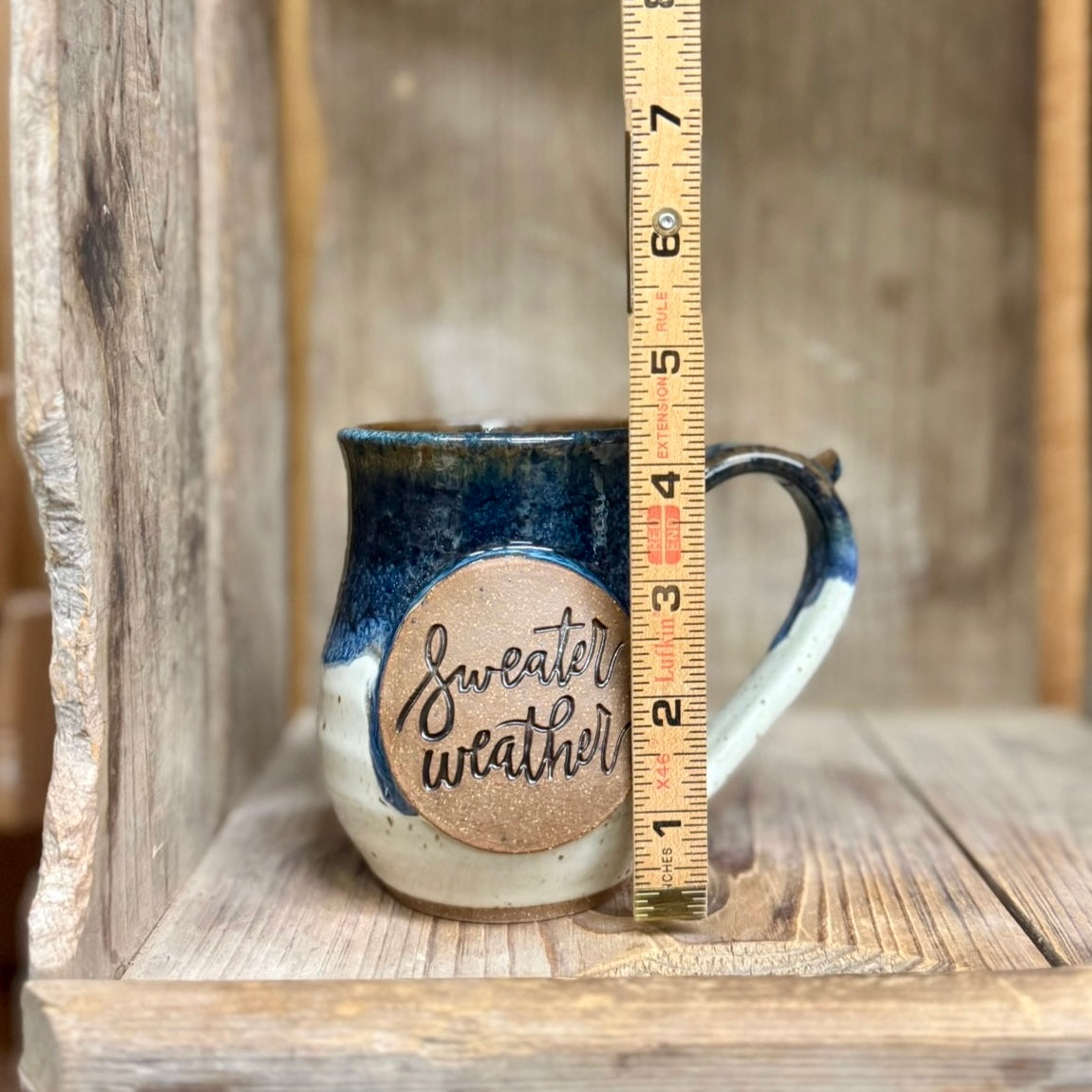 I ordered the Sweater Weather (Blue Jay) mug as a fall gift for my daughter - and she loved it! She said the glaze colors were beautiful, and the mug exceptionally well made. I would definitely purchase from Alewine again!