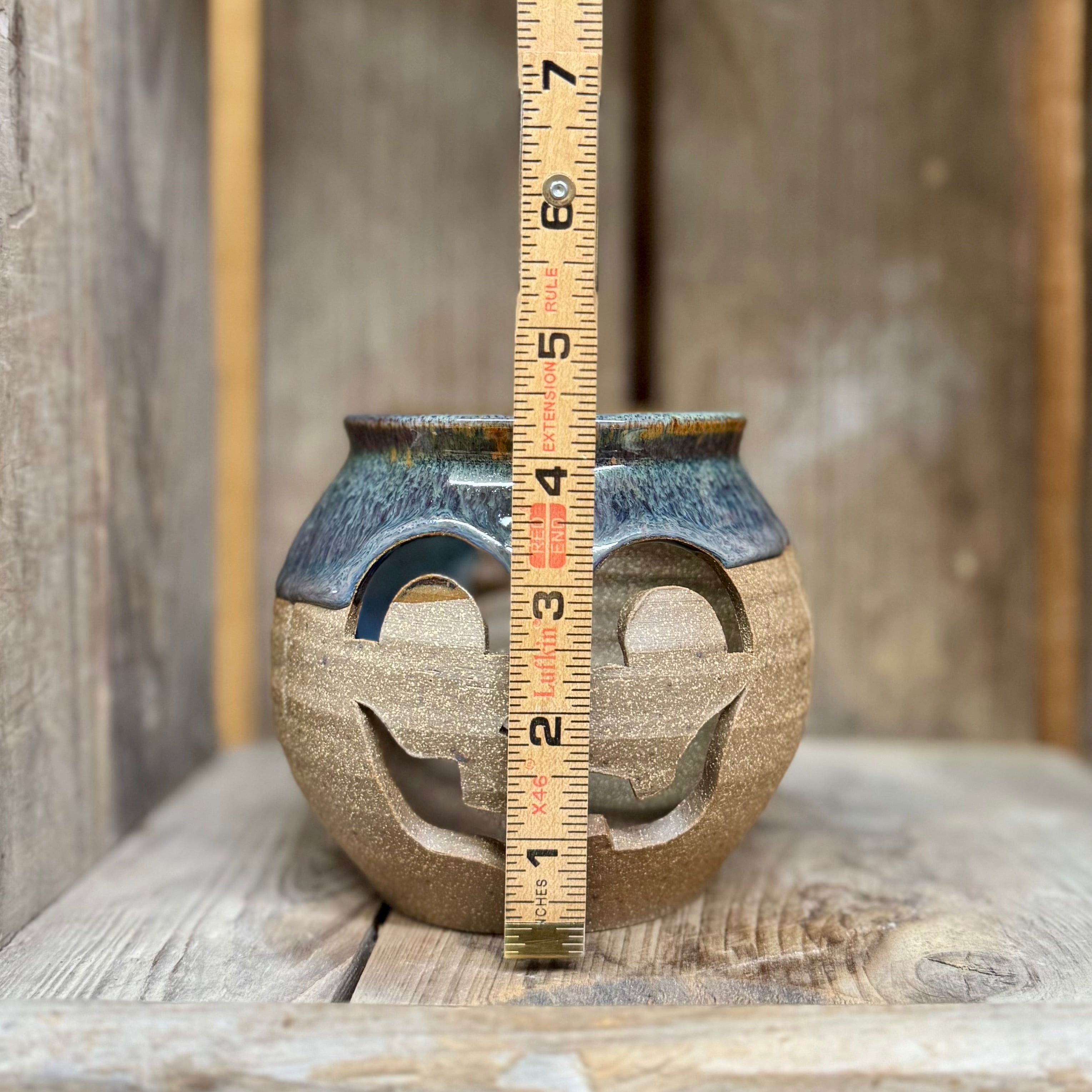 This is a very well made piece of pottery! The candle in it is a plus. I may leave it out all year. A great addition to my collection of larger pieces of Alewine pottery. So glad that I decided to order it.