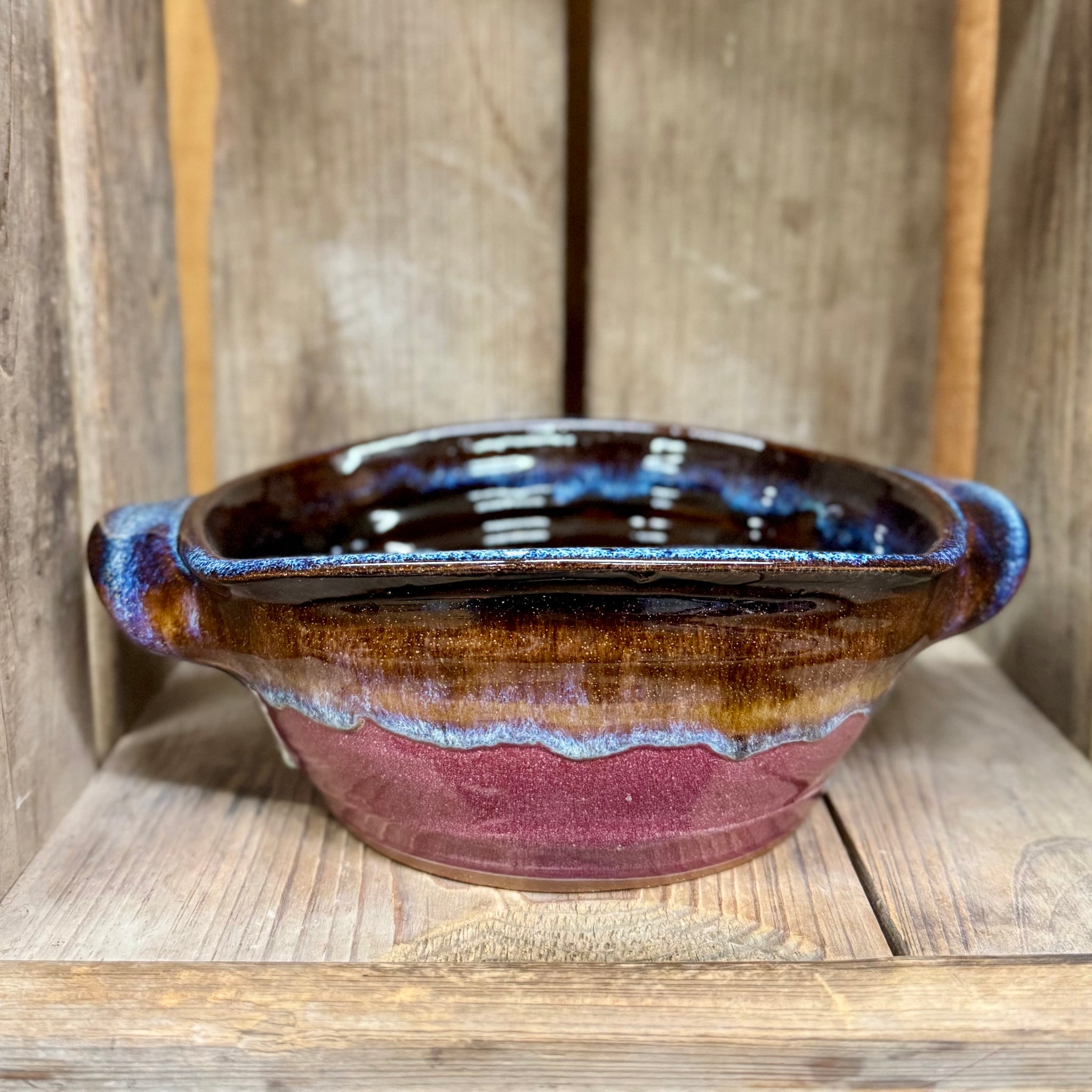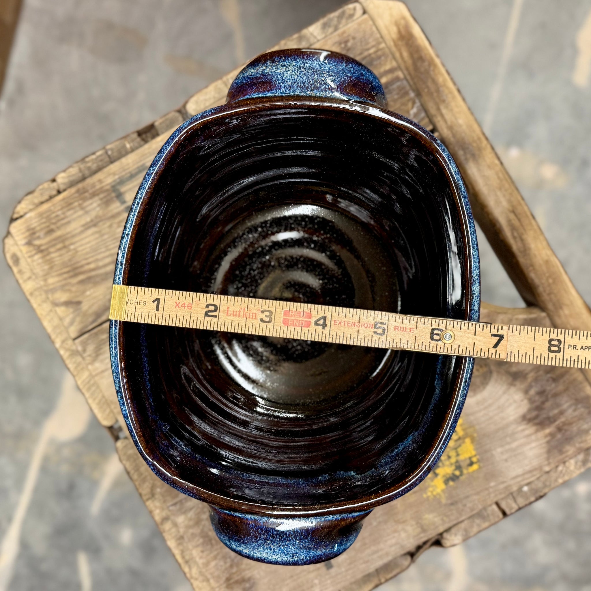 Every piece is hand-thrown on the potter's wheel and is unique. No two are exactly alike and they each have their own character. The image you see is a very close representation of the item you are ordering with slight variations.