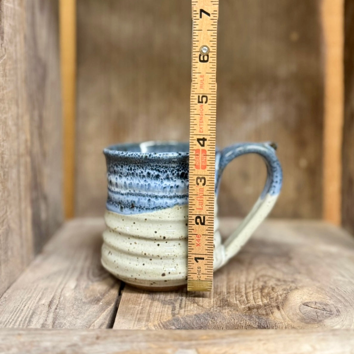 Every piece is hand-thrown on the potter's wheel and is unique.  No two are exactly alike and they each have their own character.  The image you see is a very close representation of the item you are ordering with slight variations.