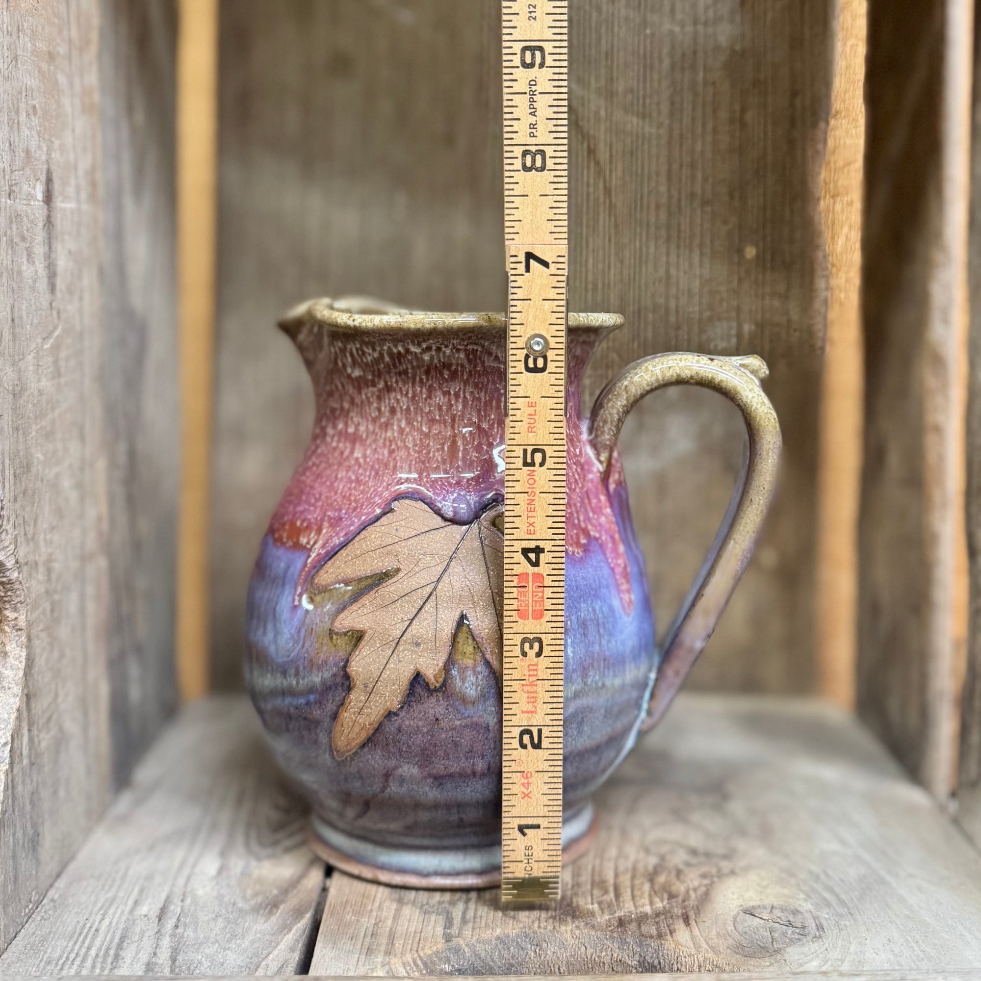 Pitcher holding approximately 6 cups with leaf impressions on both sides.
