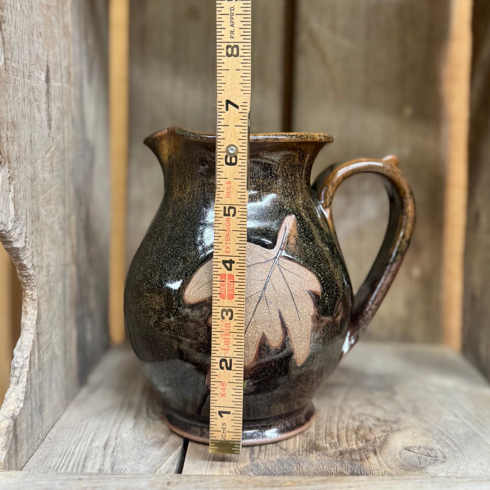 Pitcher holding approximately 6 cups with leaf impressions on both sides.