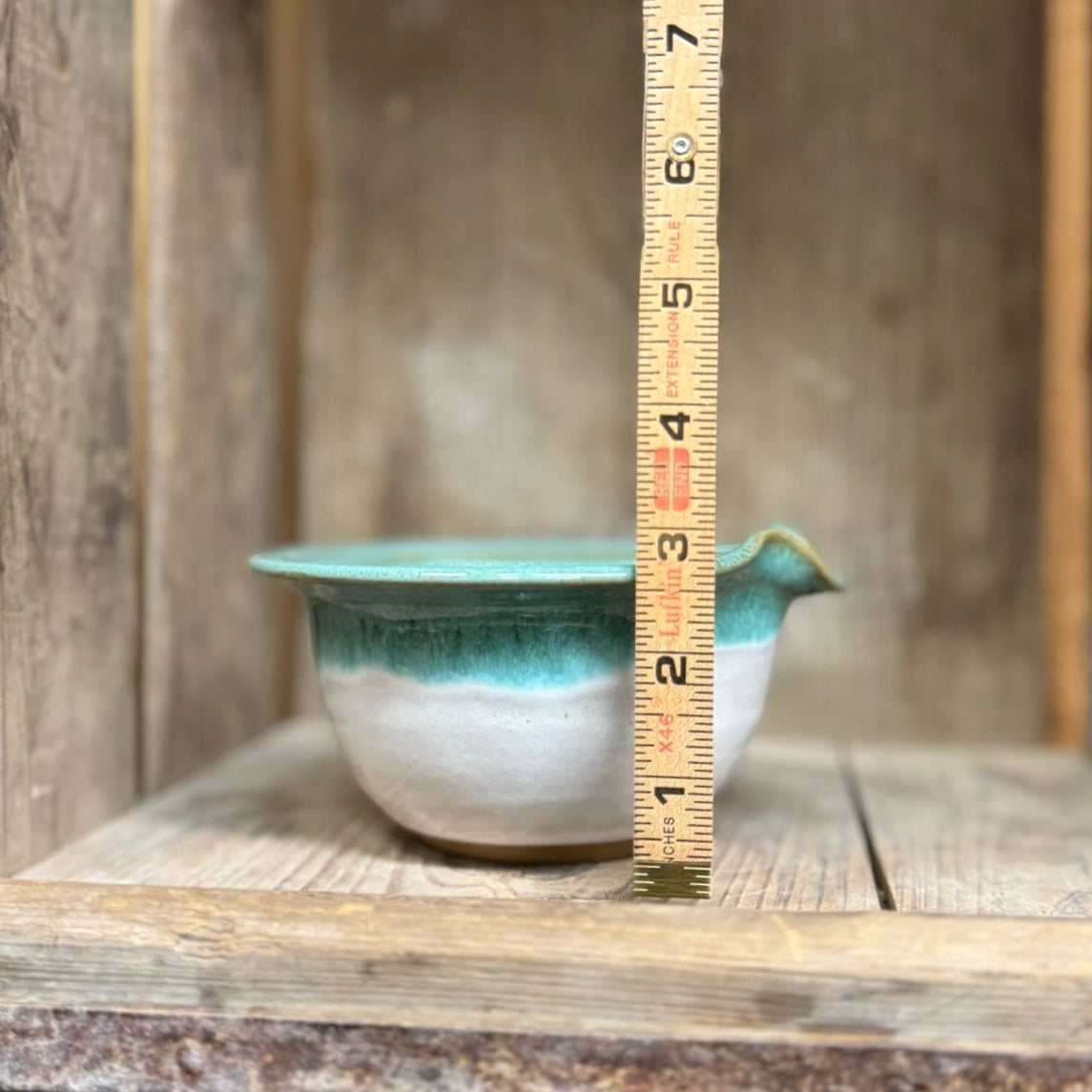 Every piece is hand-thrown on the potter's wheel and is unique. No two are exactly alike and they each have their own character. The image you see is a very close representation of the item you are ordering with slight variations.