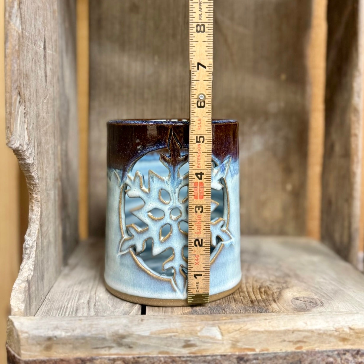 This is a beautiful luminary! I will enjoy this throughout the winter and for many more years to come! Alewine Pottery is the best I have many pieces which I use throughout the year.