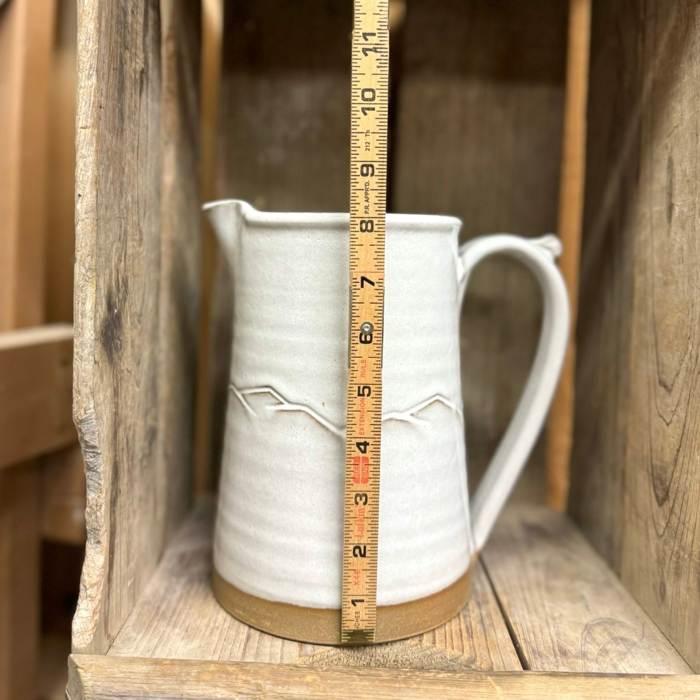 Our Appalachian Collection draws inspiration from our mountain roots here in the Smokies. Hand carved mountain range design in this 2 quart pitcher.