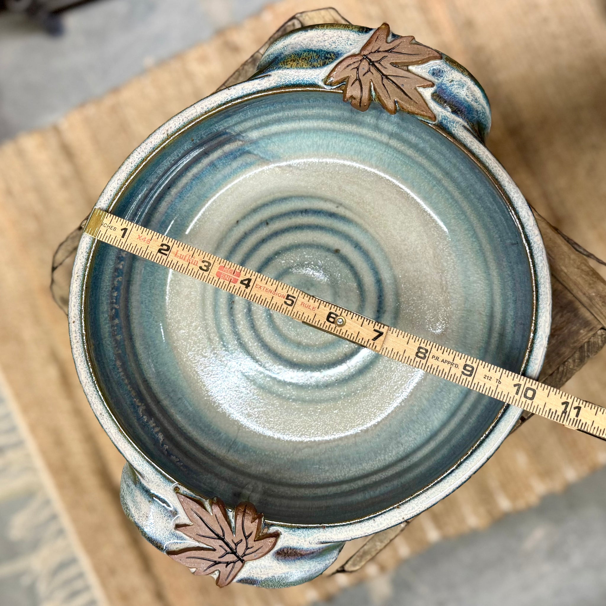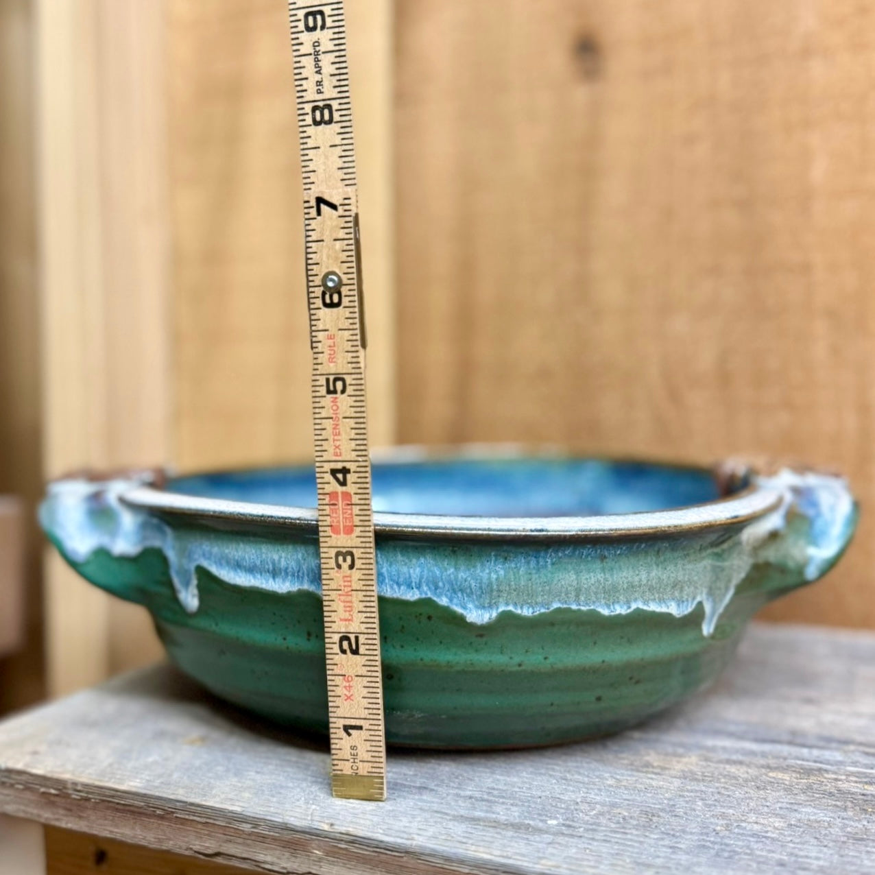 Every piece is hand-thrown on the potter's wheel and is unique.  No two are exactly alike and they each have their own character.  The image you see is a very close representation of the item you are ordering with slight variations.