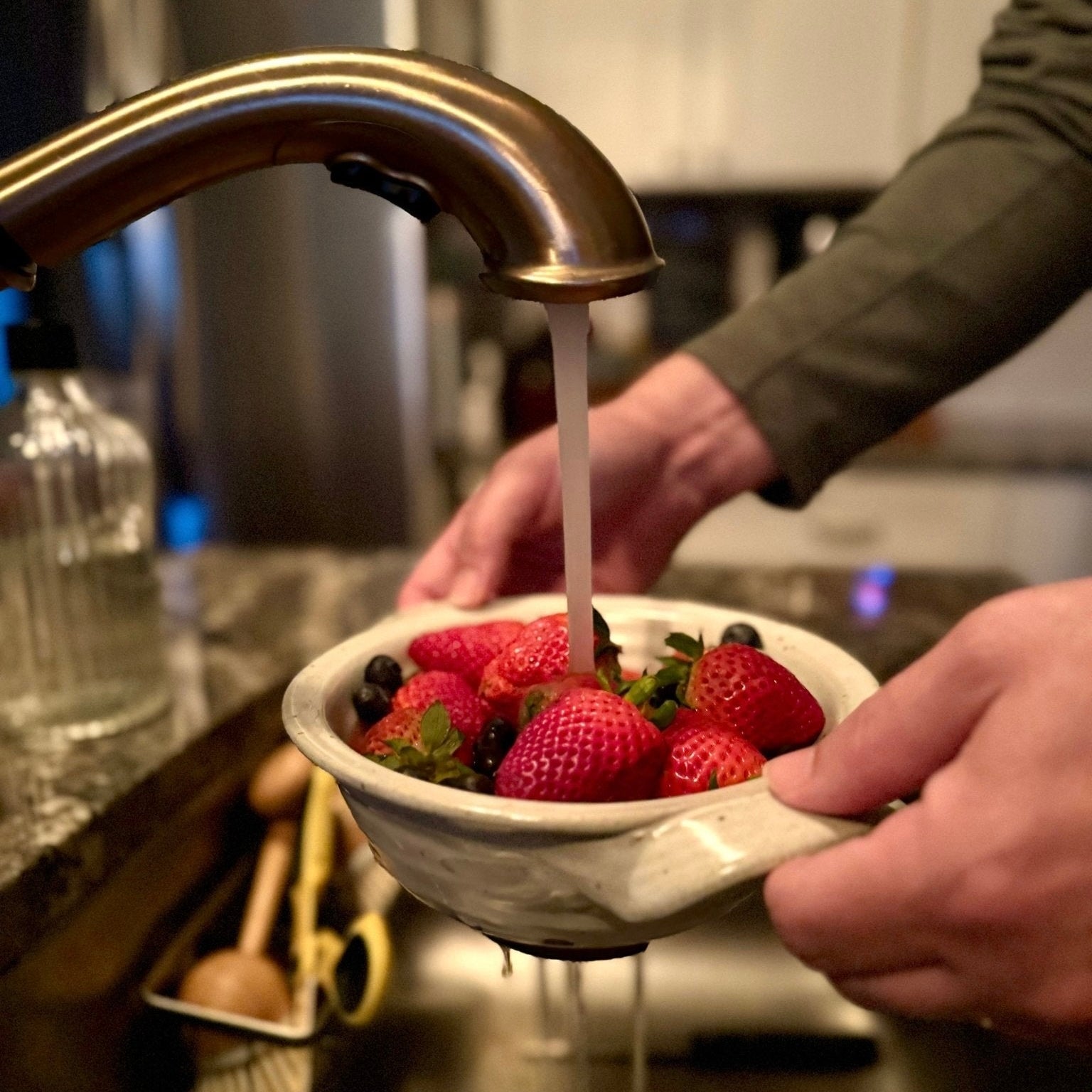 New berry bowl for washing your fresh berries! Not for use with boiling water…that may crack your piece.