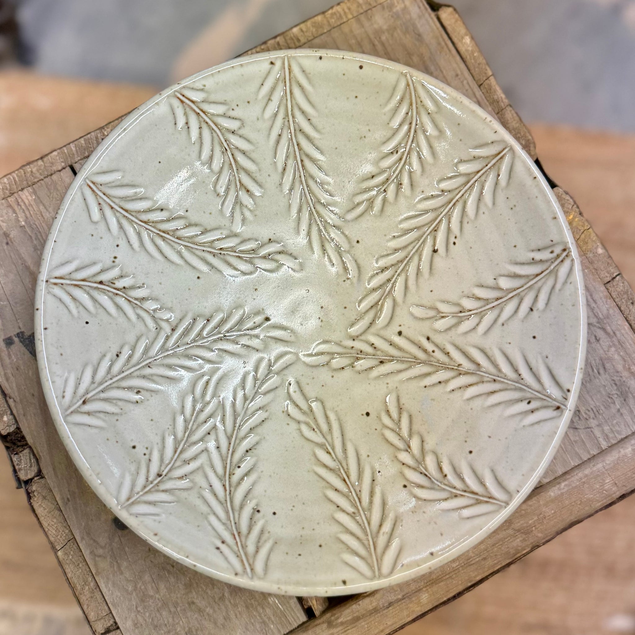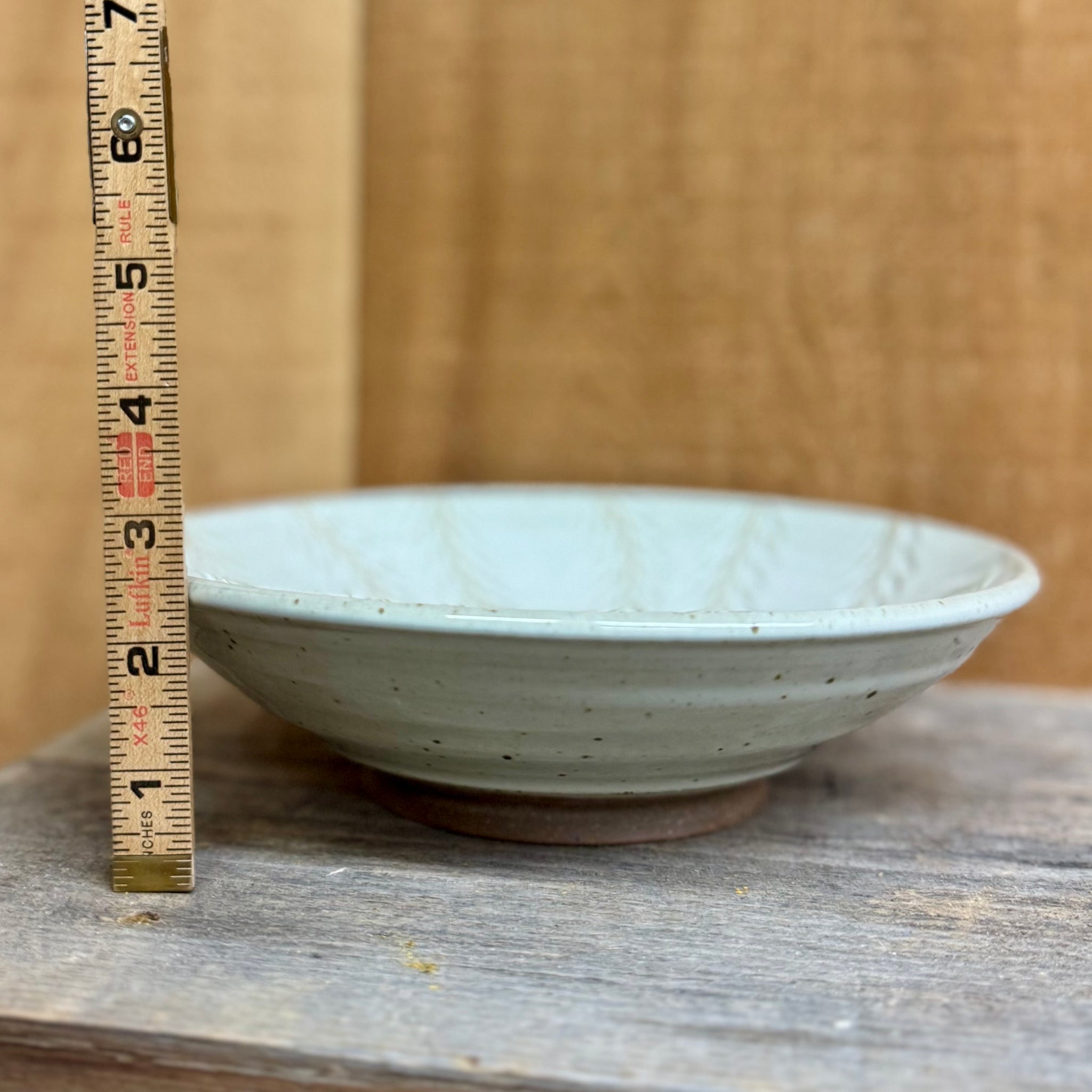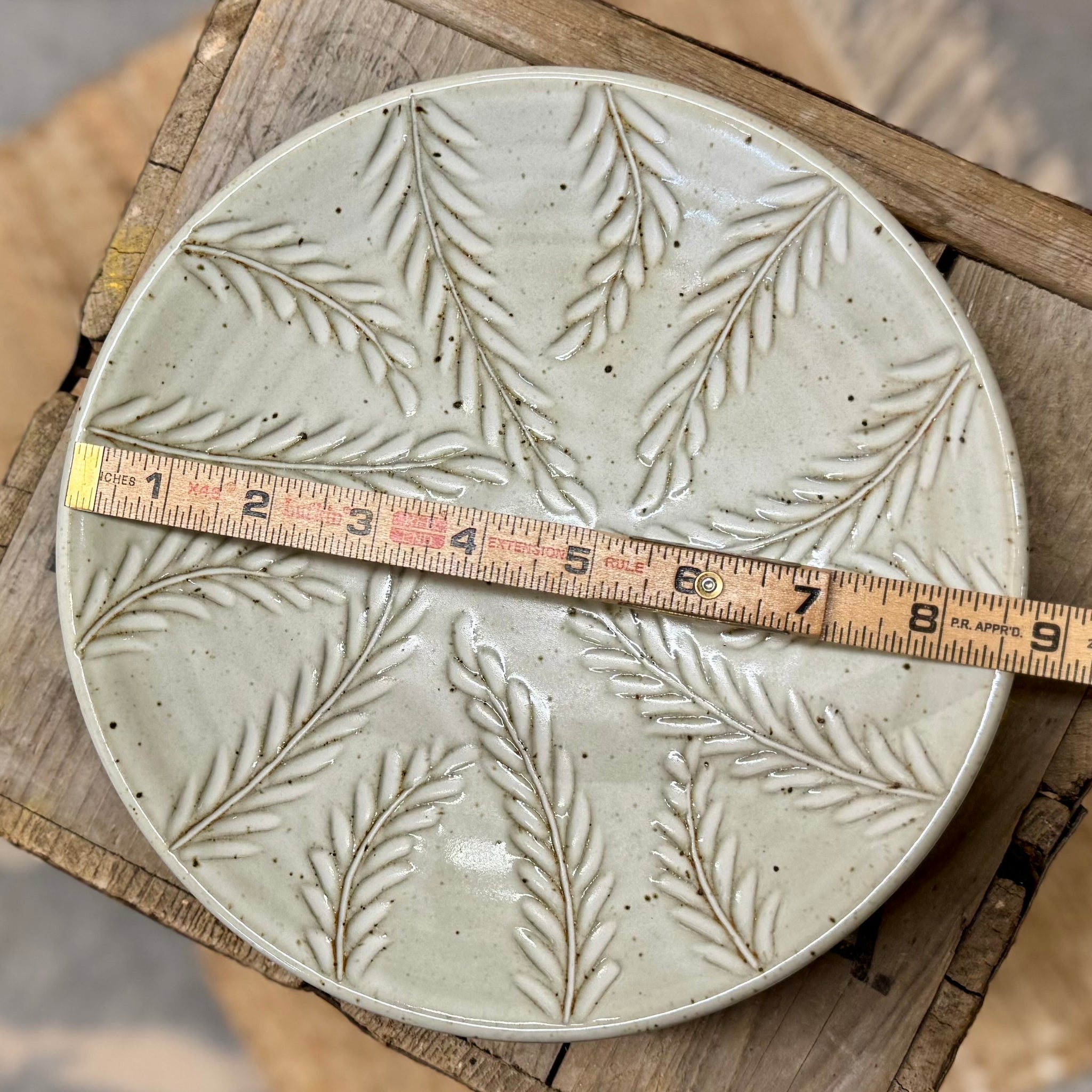 Shallow bowl with hand carved vine design.