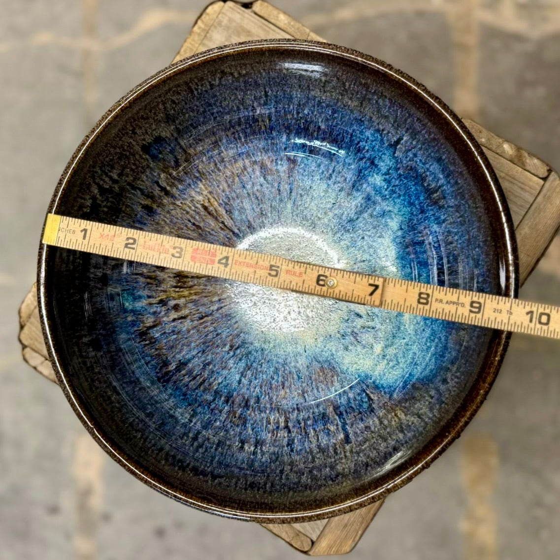 Large bowl glazed in our new, layered, Dark Night color combination.