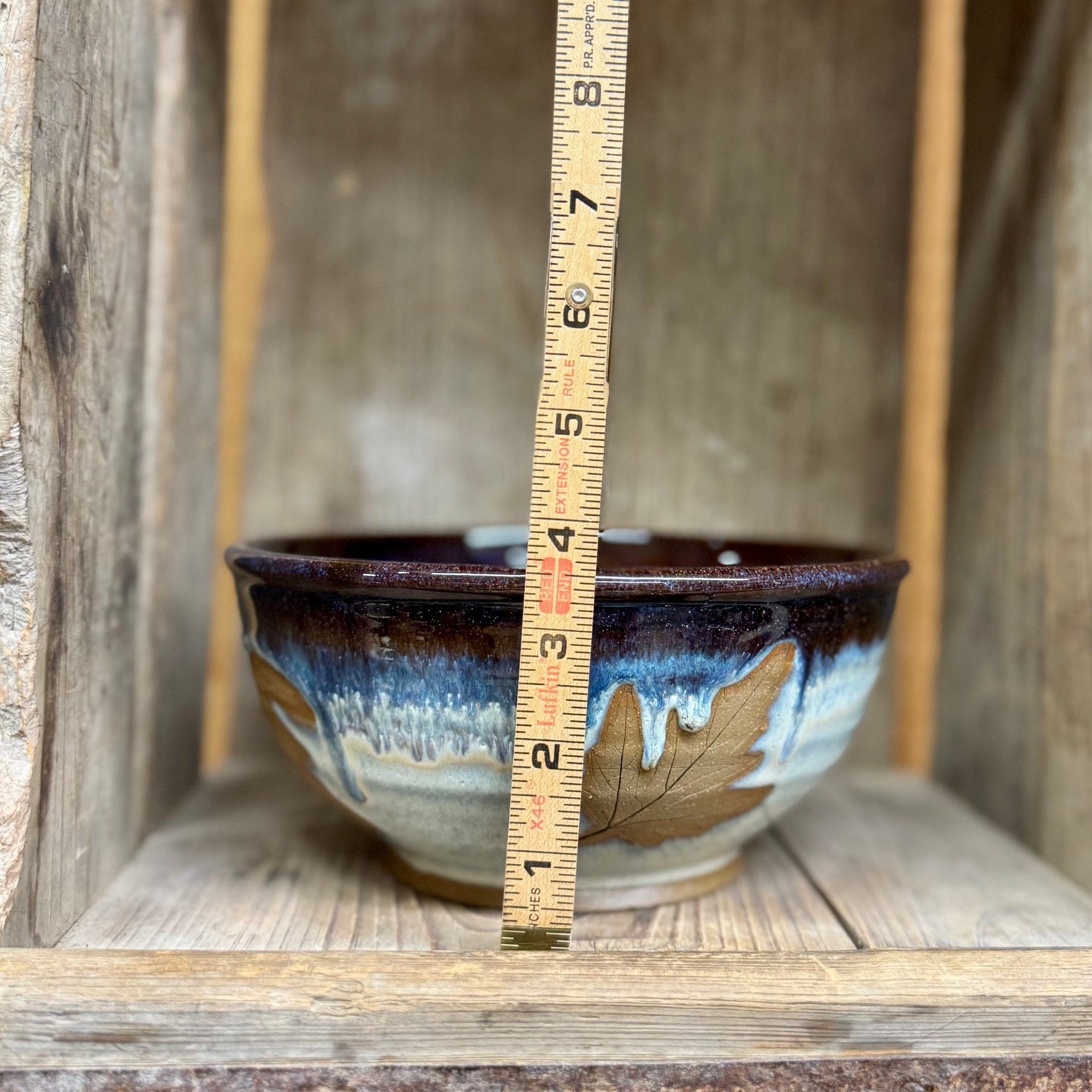 Serving bowl with real Maple leaf impressions. Safe for the microwave and dishwasher.