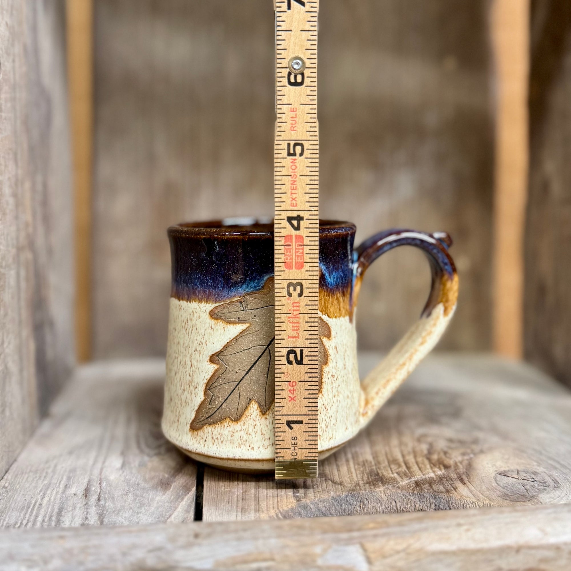 Every piece is hand-thrown on the potter's wheel and is unique. No two are exactly alike and they each have their own character. The image you see is a very close representation of the item you are ordering with slight variations. Holds approximately 12 ounces. Microwave and dishwasher safe.