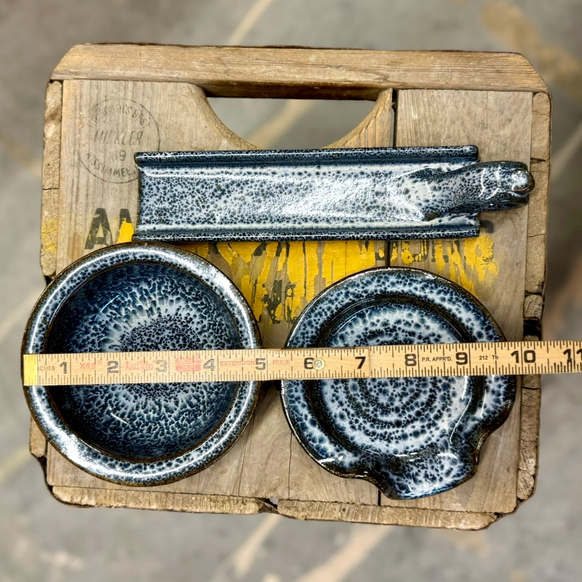 One Butter Tray, one Salsa Bowl, and Spoon Rest. Microwave and dishwasher safe.