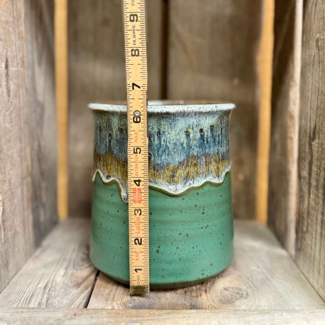 The perfect resting spot for your hard working utensils. Every pot is handmade and unique. No two are exactly alike and they each have their own character. The image you see is a very close representation of the item you are ordering with slight variations.