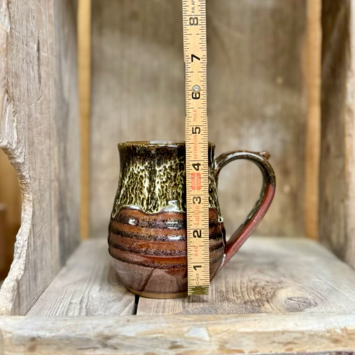 Large mug that holds approximately 16 ounces and is microwave and dishwasher safe.