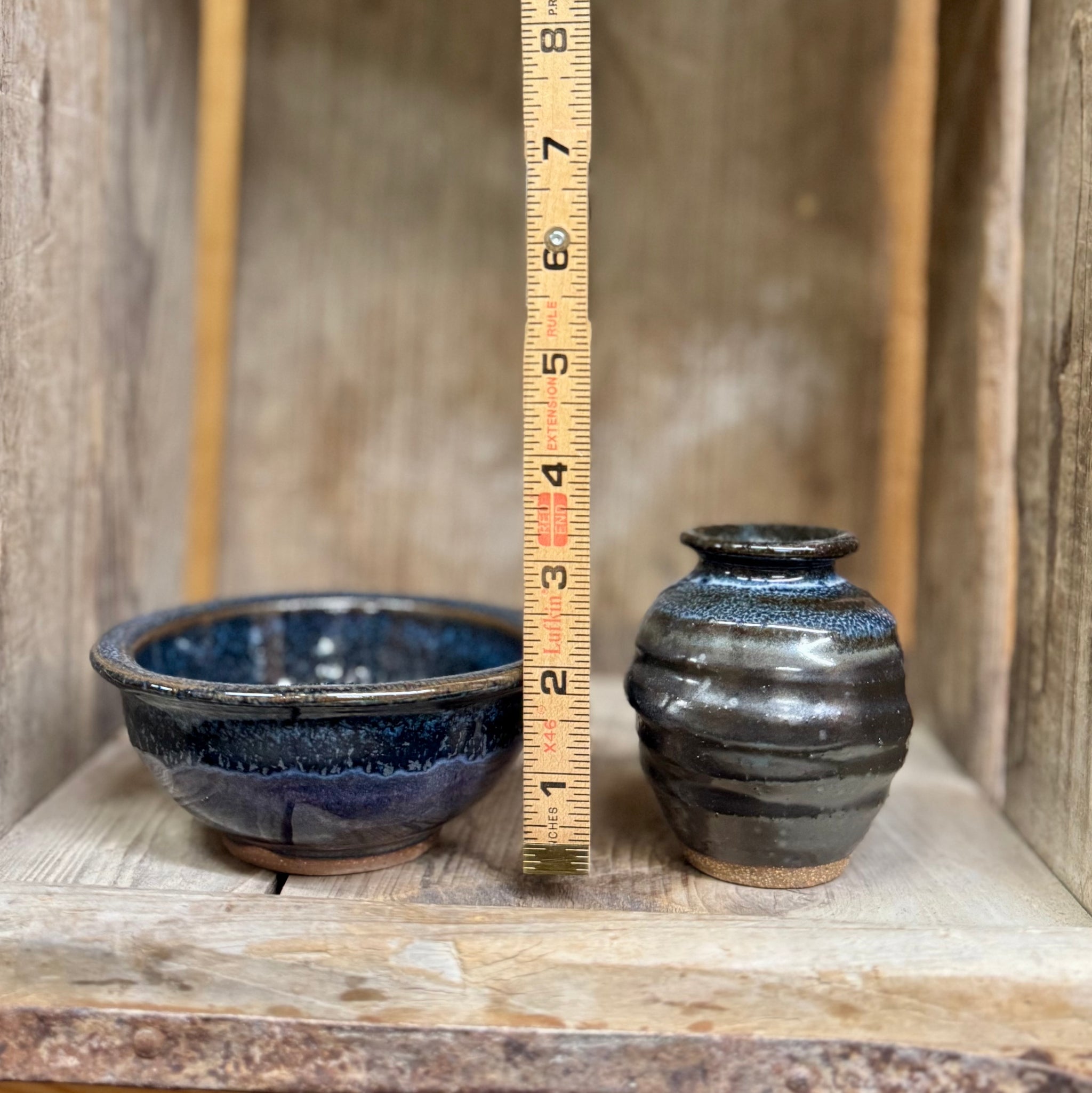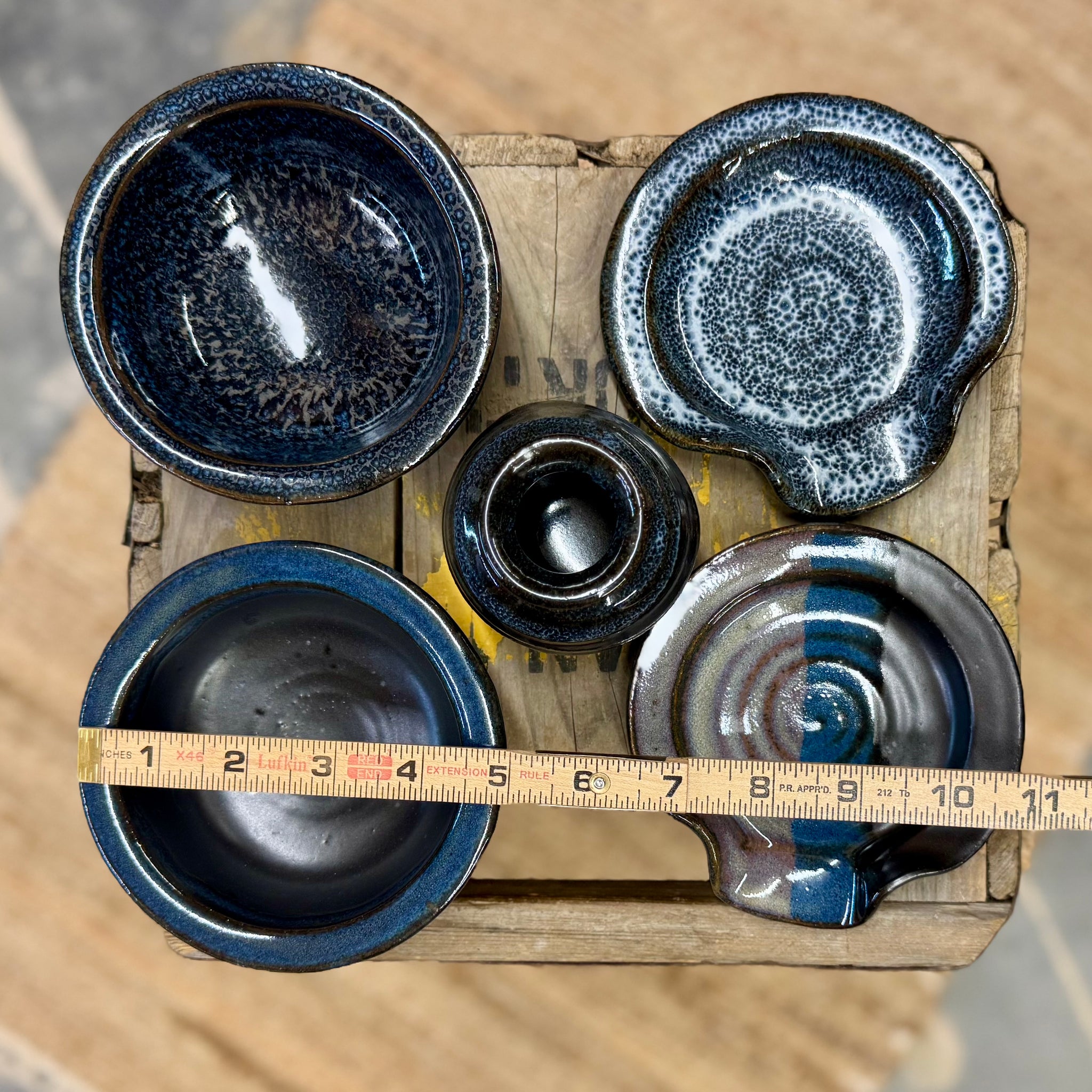 Set of 2 Salsa Bowls and 2 Spoon Rests and 1 Mini Vase in coordinating colors.