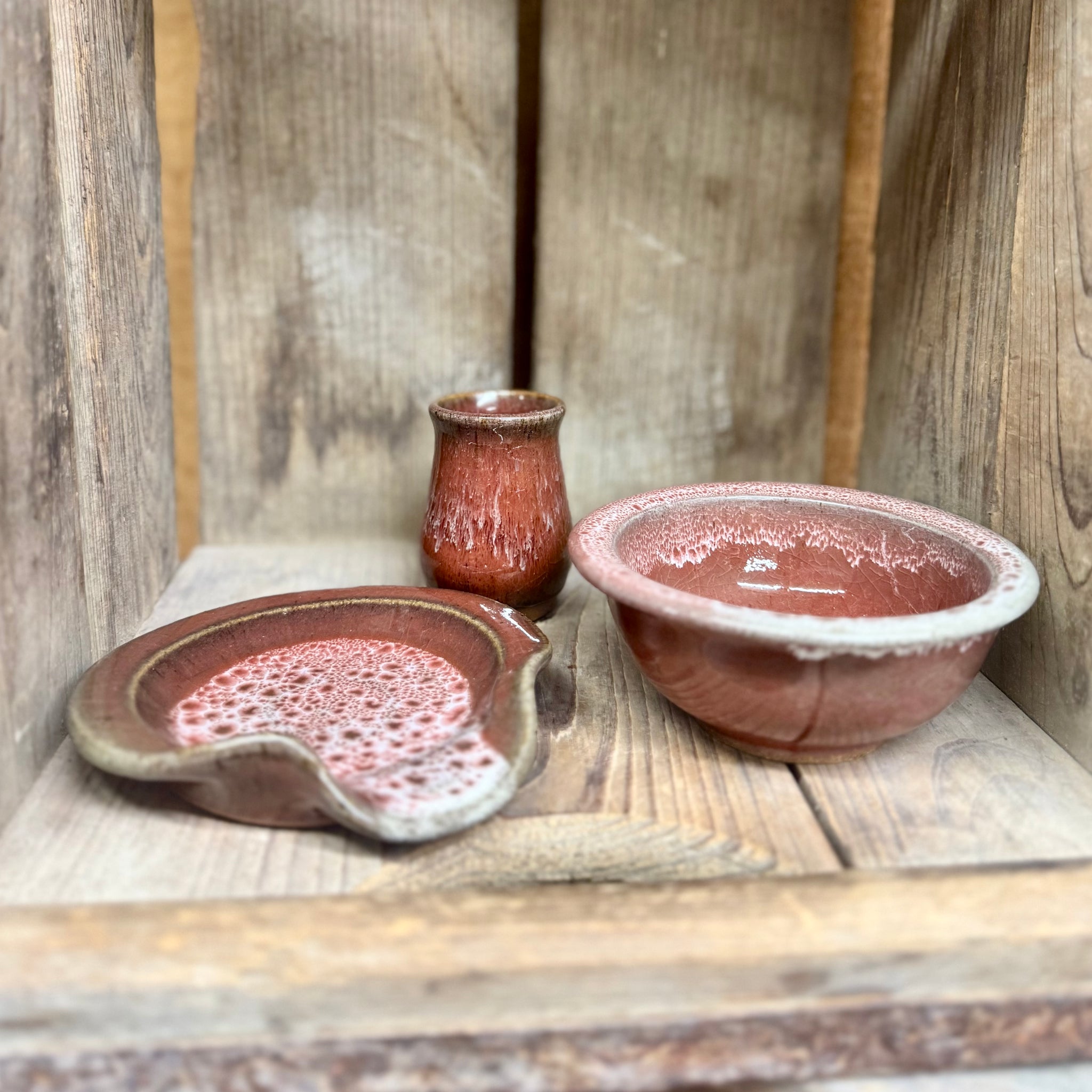 One Salsa Bowl, one Spoon Rest, and one Mini Vase in this set.