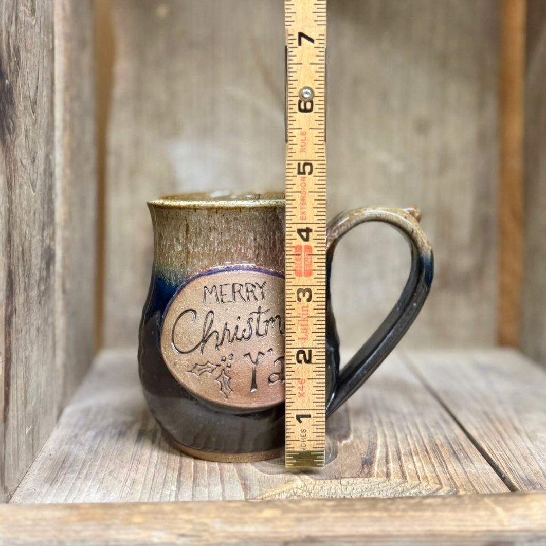 Seasonal mug that holds 14 ounces and is microwave and dishwasher safe.